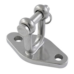 Made from 316 stainless steel with either Shackle and clevis pin or solid eye. Base plate is 7mm thick with 2 x 8mm fixing holes.