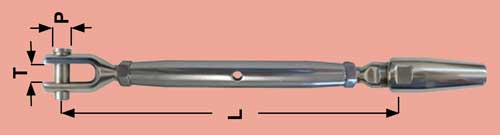 1/2" UNF Rigging Screw F/Comp CB SS (7mm 1x19) |