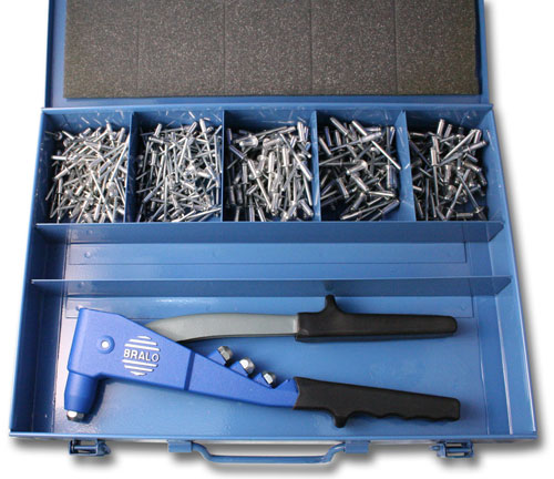 3300B - Supplied with case, 4 nozzles (2.4mm, 3.2mm, 4mm, 4.8mm), spanner and 60 aluminium rivets.