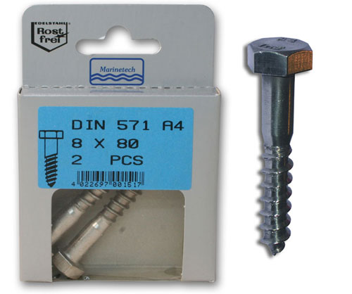 Pre-packed hexagon wood screw. Made from A4 stainless steel.