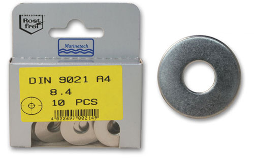 Pre-packed large pattern washers, made from A4 stainless steel.