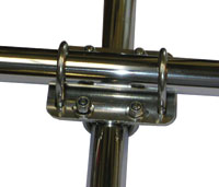 Made from 316 stainless steel. Clamp plates are supplied with nylon nuts, and are designed to clamp two 1" (25.4mm) tubes at right angles.