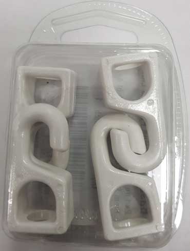 Tough, plastic shock cord hooks in a range of patterns. All attach with a knotted end in the shock cord. gated and non gated, made from white marine grade Nylon.