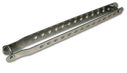 Used on dinghies instead of a rigging screw for easy, pin-release adjustment. Made from Stainless Steel, supplied with clevis pins.