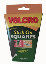 Self adhesive Squares 25mm x 25mm. 24 sets of hook and loop supplied.